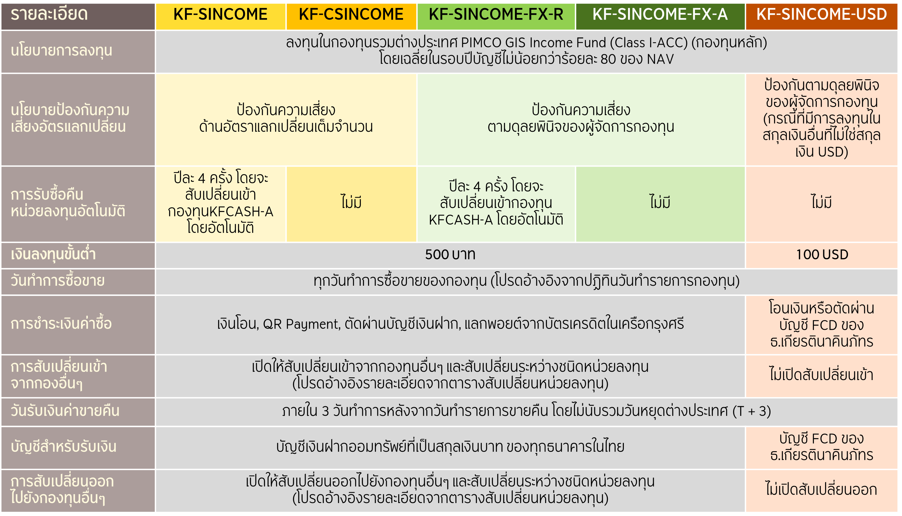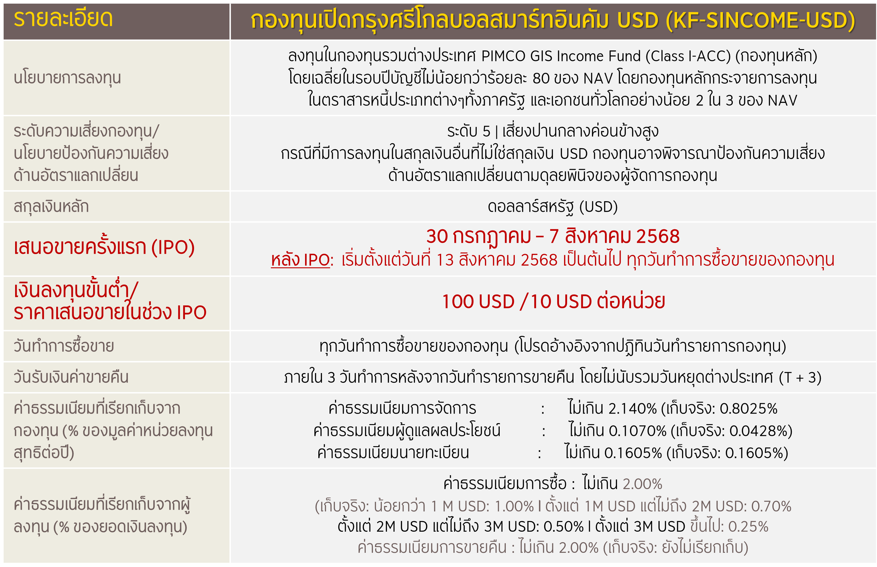 และสรุปข้อมูลกองทุนใหม่ KF-SINCOME-USD