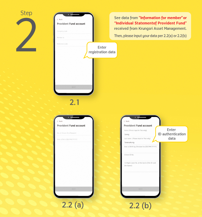 In the case that you want to add other Provident Fund accounts, after you choose the account you want to add, you have to specify the reference code as appeared on the “Individual Statement of Provident Fund” received from Krungsri Asset Management to confirm your account ownership.