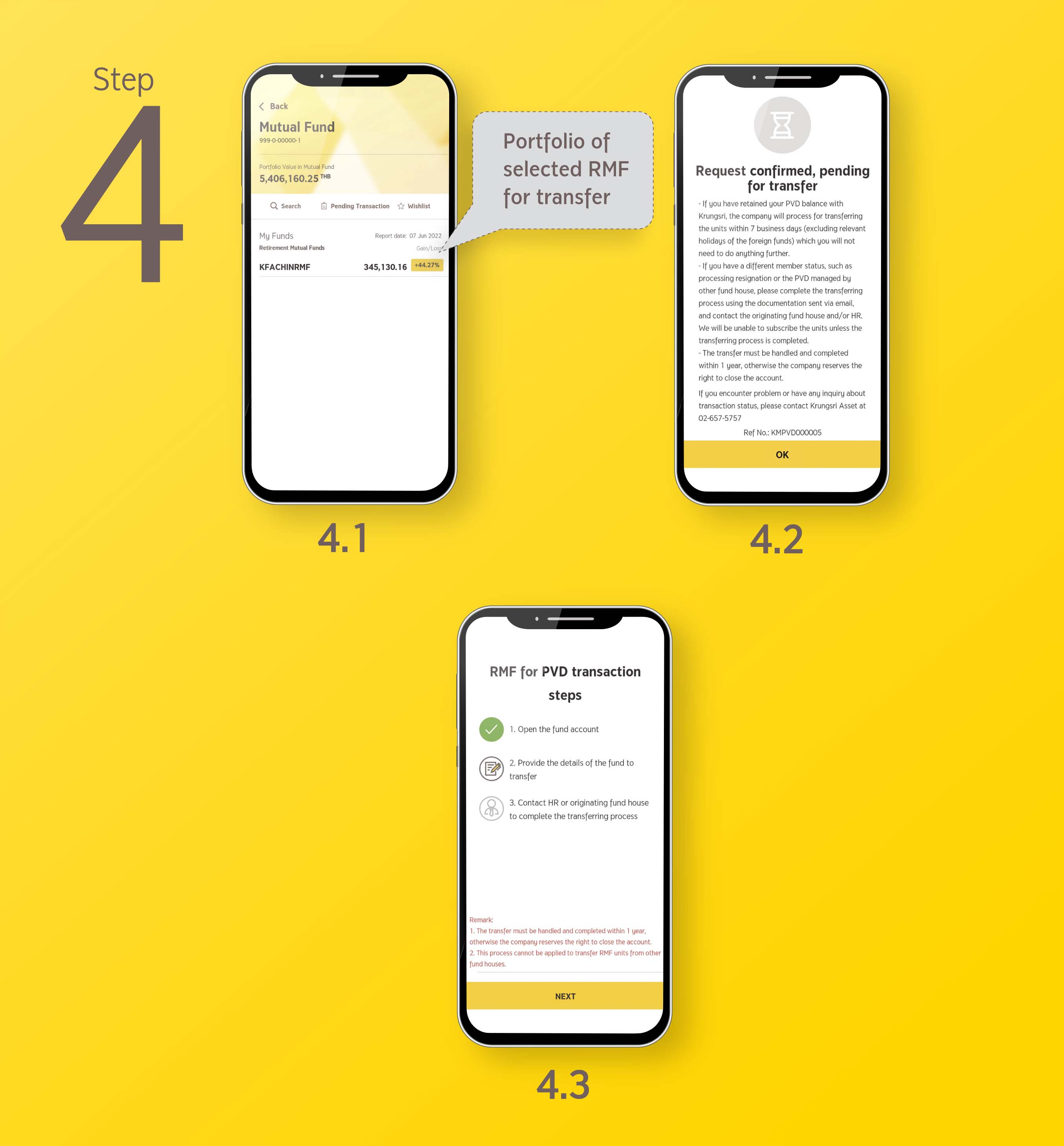 - After completing the whole process, you will receive the PDF copy of PVD to RMF transfer via email which you can print and send to the employer's company (human resource department of the previous company) or the origin asset management who manages PVD (depending on the case).