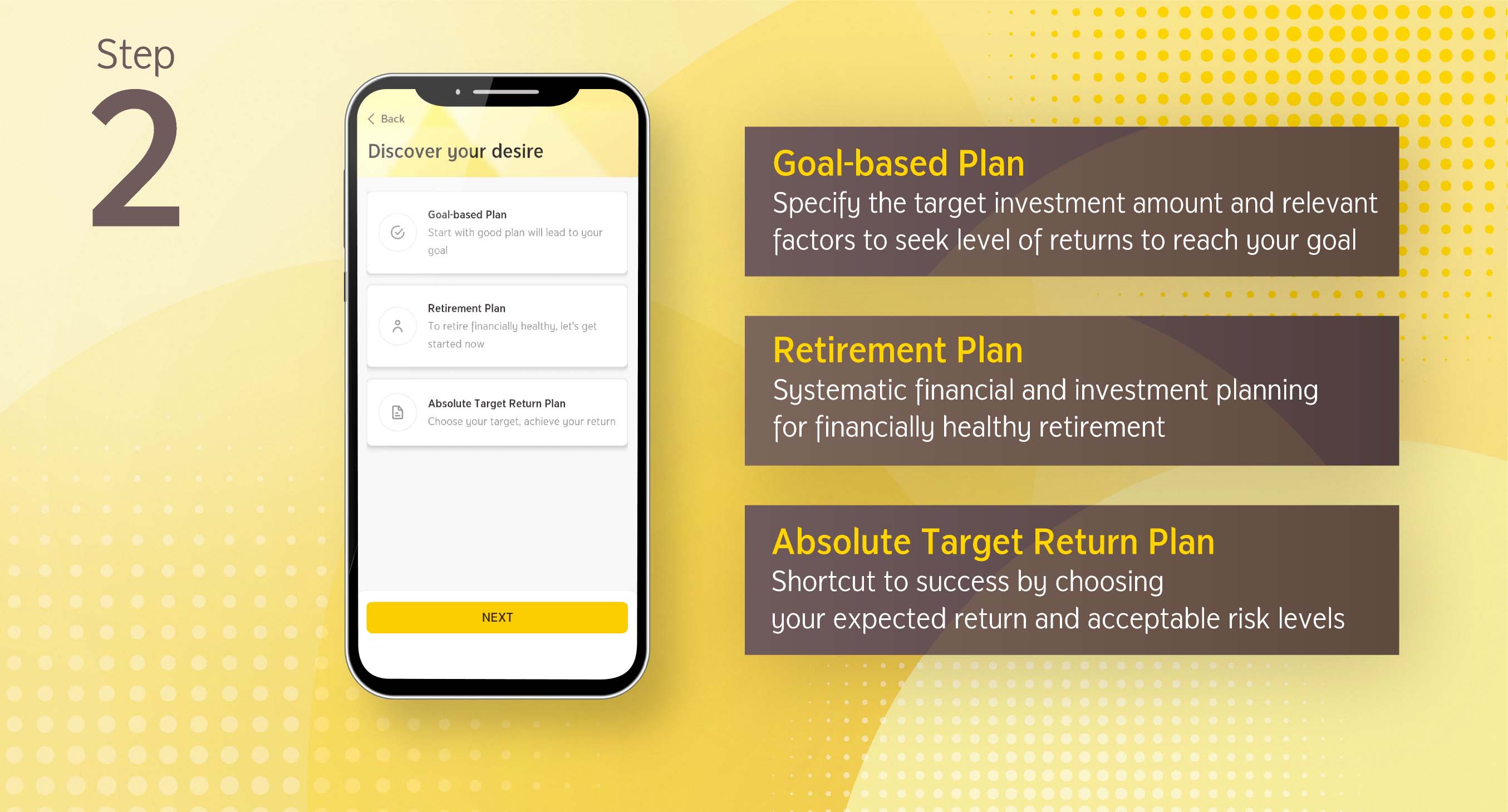 Select the desired type of investment plan. There are three types of investment plans in the system. Then, specify the information in order.