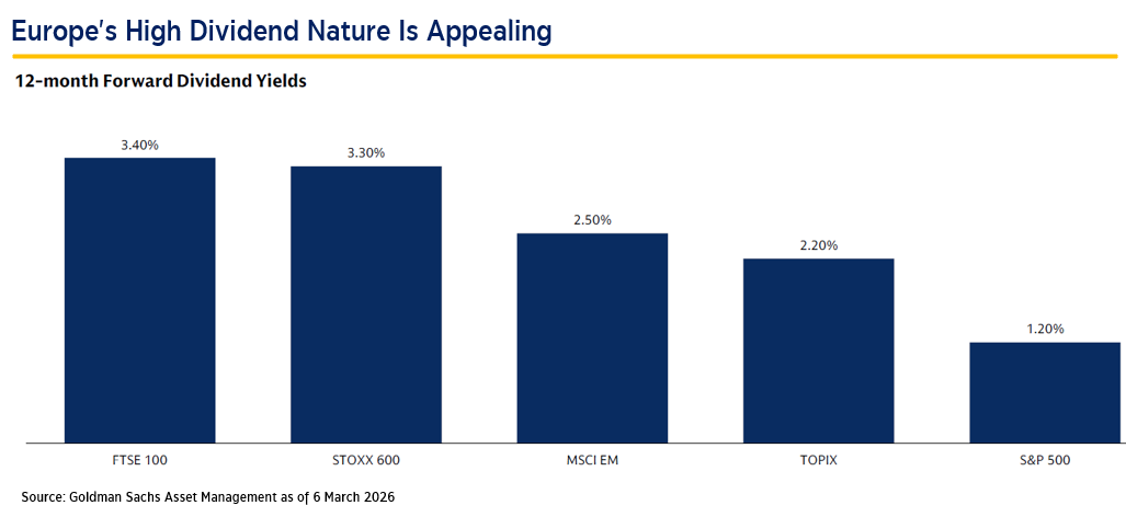 - Earnings Acceleration: EPS growth in Europe is expected to accelerate further in 2027. (Source: Goldman Sachs Asset Management as of 9 Mar 2026)