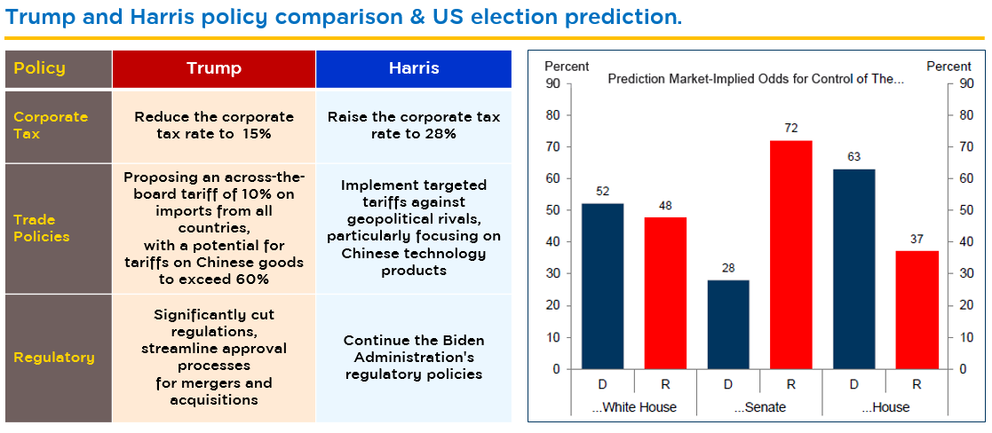 - Upcoming US elections will continue influencing investment decisions, causing market volatility until results provide clarity.
