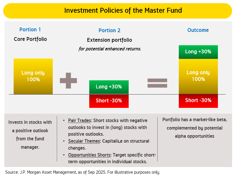 - The US Select Equity Plus Fund employs a “super active” strategy combining both long and short positions to capture returns in varying market conditions. The core long-only portfolio provides steady market exposure, while an extension portfolio tactically combines long and shorts strategies for potential enhance returns. This structure helps maintain consistent alpha generation while controlling overall volatility.