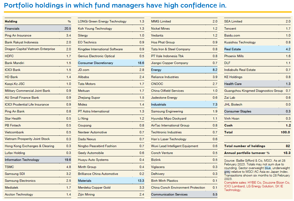 Source: MSCI, Baillie Gifford & Co as of 28 Feb. 2023 | Totals may not sum due to rounding. Cash are excluded.