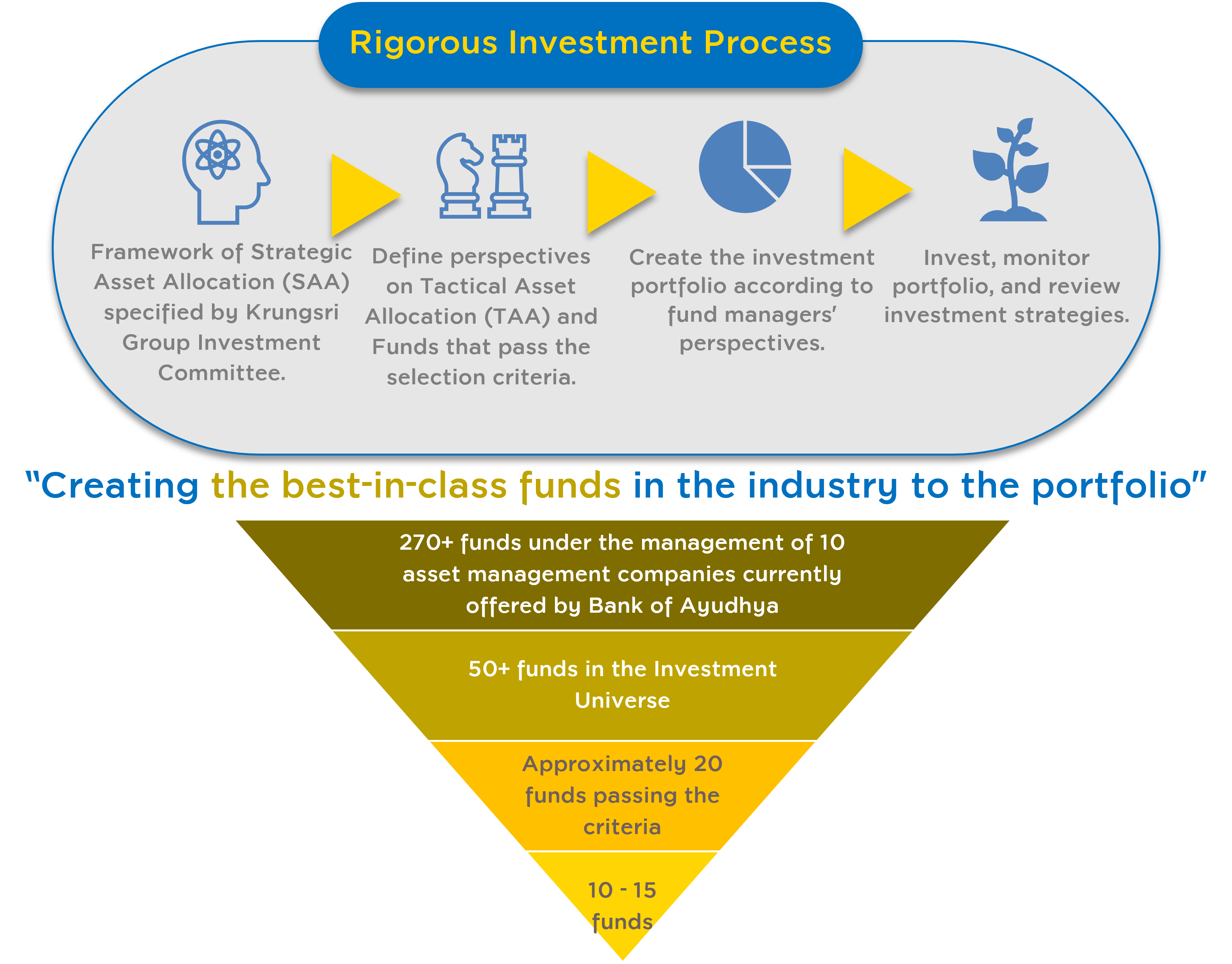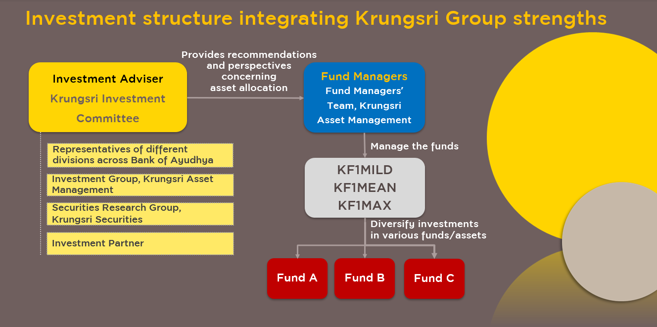In terms of framework of portfolio weight and target returns of Krungsri The One funds, they vary according to asset allocation strategy through various asset types.