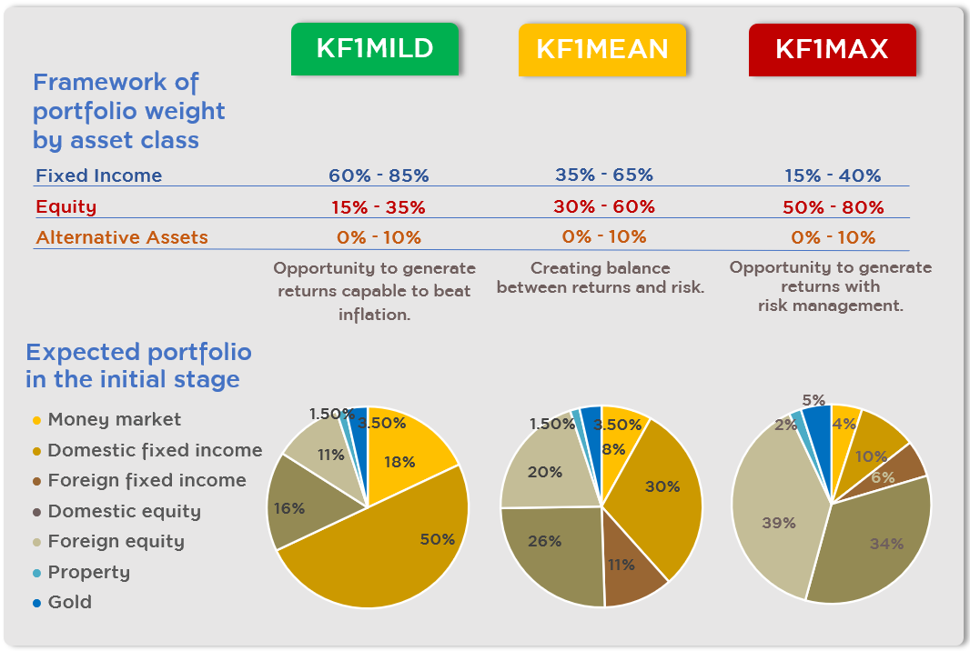 For fund details, click: KF1MILD-A | KF1MEAN-A | KF1MAX-A