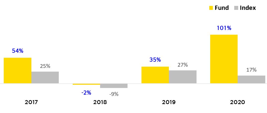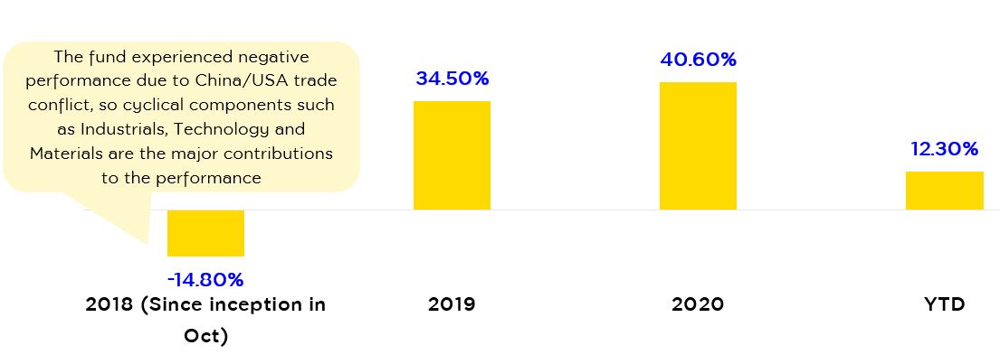 - Growing portfolio has generated different proven returns with the fund’s outstanding performance (calendar year)