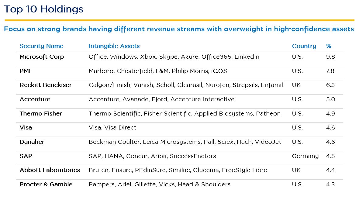 - A concentrated high quality global portfolio of global companies with defensive characteristics and compounding potential in the long run through the Robust bottom-up process thanks to these brands’ strong position and loyalty, resulting in an increase of customers' repeat purchase. Thus, pricing will be not a key driver anymore, while the company has an opportunity to sell products at premium price. (Source: Morgan Stanley Investment Management)