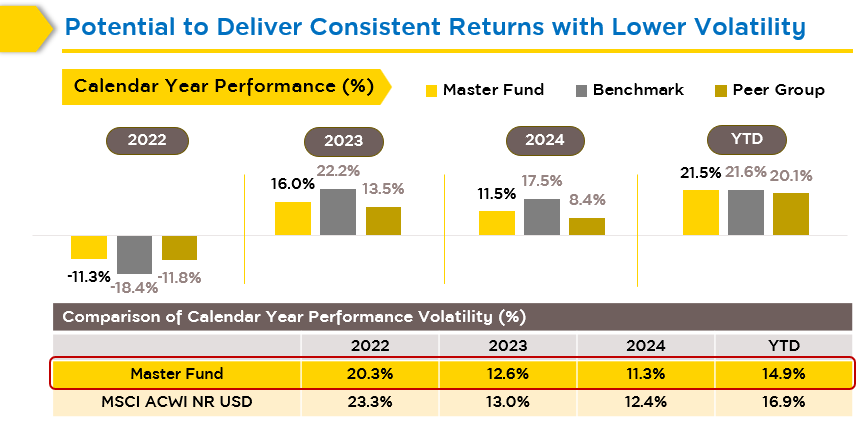 - 2023–2025: Despite market concentration in AI-related and technology stocks, particularly the “Magnificent 7,” the fund continued to deliver positive returns, even without significant exposure to these sectors.