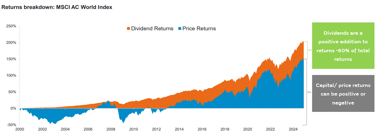 - Defensiveness: Dividend stocks tend to be more resilient in market downturn whilst outperforming over the long-term with lower drawdowns during market downturns