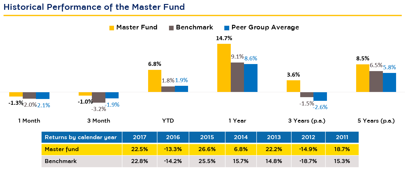 The Master Fund has a track record of outstanding long-term performance that beats the benchmark and industrial average.