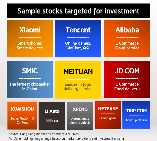 - Focuses on stocks included in the Hang Seng Tech Index, a key benchmark for China's tech sector, featuring 30 leading large-cap technology companies listed in Hong Kong.
