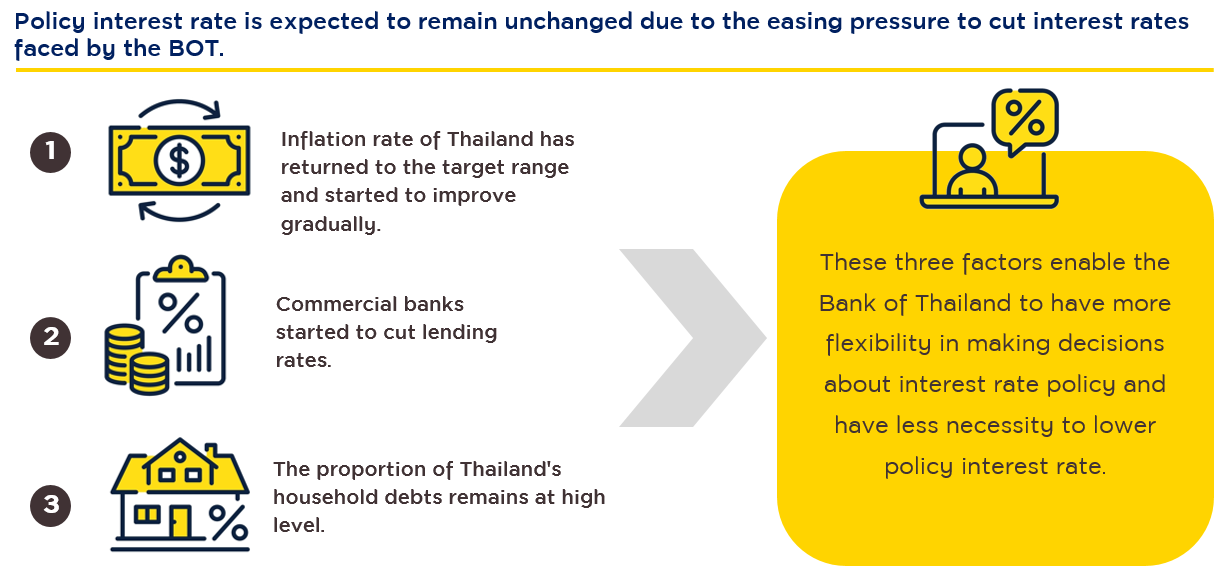 - Thailand’s policy interest rate is staying at a 10-year high, and the current rate-hiking cycle is expected to have come to an end. (Source: Krungsri Asset Management and Bank of Thailand as of 12 Jun. 2024)