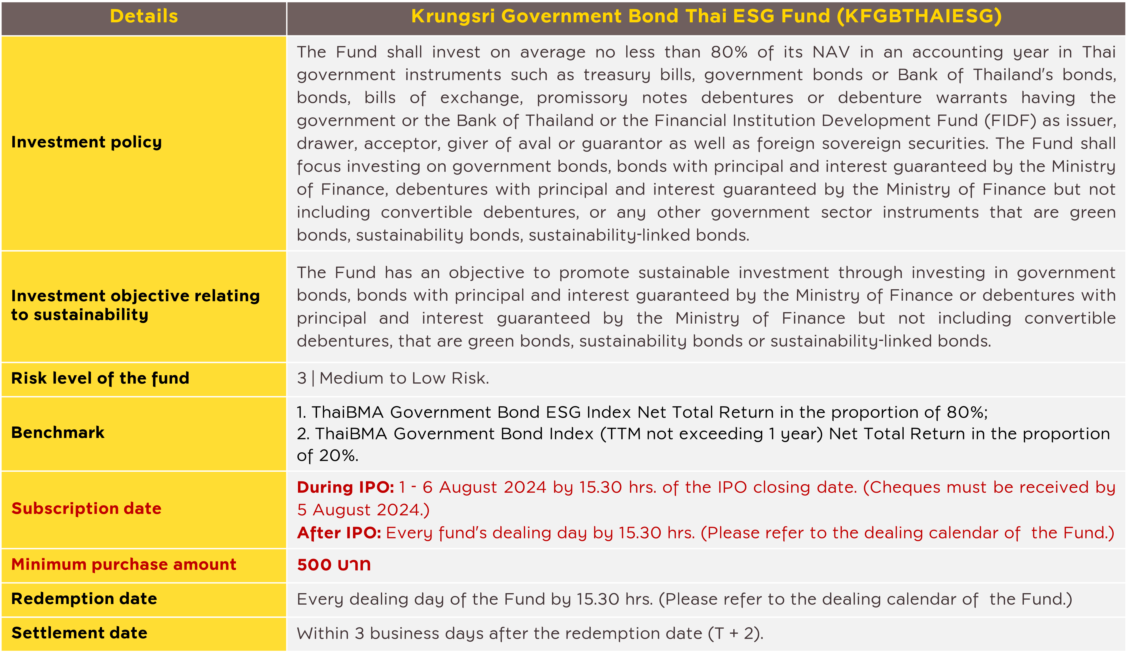 IPO: 1 – 6 August 2024. | Minimum purchase amount: 500 Baht.