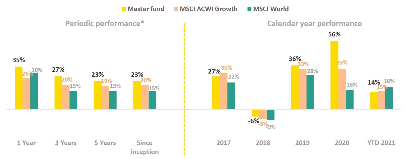 | Investment policy | Invest in the master fund named Goldman Sachs Global Millennials Equity Portfolio, Class I Shares (Acc.), on average in an accounting year, of not less than 80% of fund’s NAV. The master fund has the policy to invest in equity which provide exposure to companies that are domiciled anywhere in the world which are beneficiaries from the behavior of the Millennials generation, defined as individuals born between 1980 and 1999. |