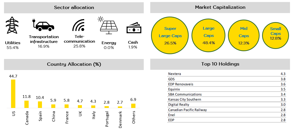 - Focus on investing in the sub themes, such as Utilities, Energy, Communication, and Transport