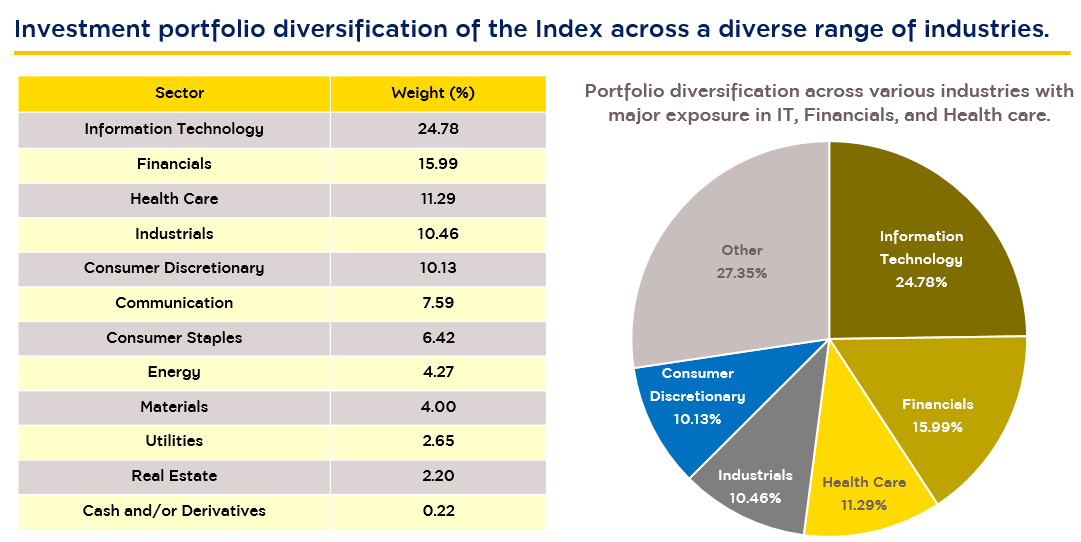 - Opportunity to diversify investment portfolio into more than 2,000 companies of varying sizes in both developed and emerging markets and across a diverse range of industries; this helps the fund to enhance their risk diversification efficiency.