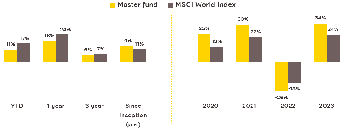 - Amidst changing market conditions, the master fund can deliver distinguished returns that can beat the market in long run.