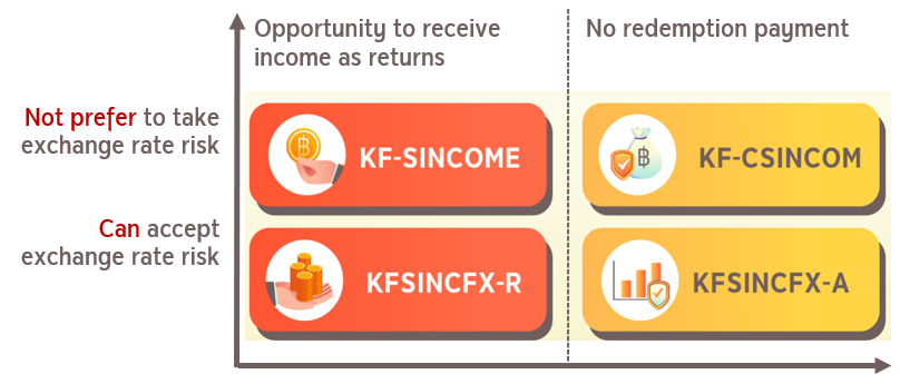 - For KF-SINCOME & KFSINCFX-R, payment of returns depends on the master fund’s performance, which may sometimes cause investors to not receive the returns at some periods of time.