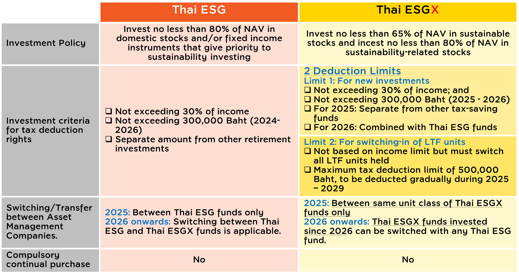 Maximize your tax deductions with 3 Thai ESGX Funds, accepting both new investments and LTF fund switching.