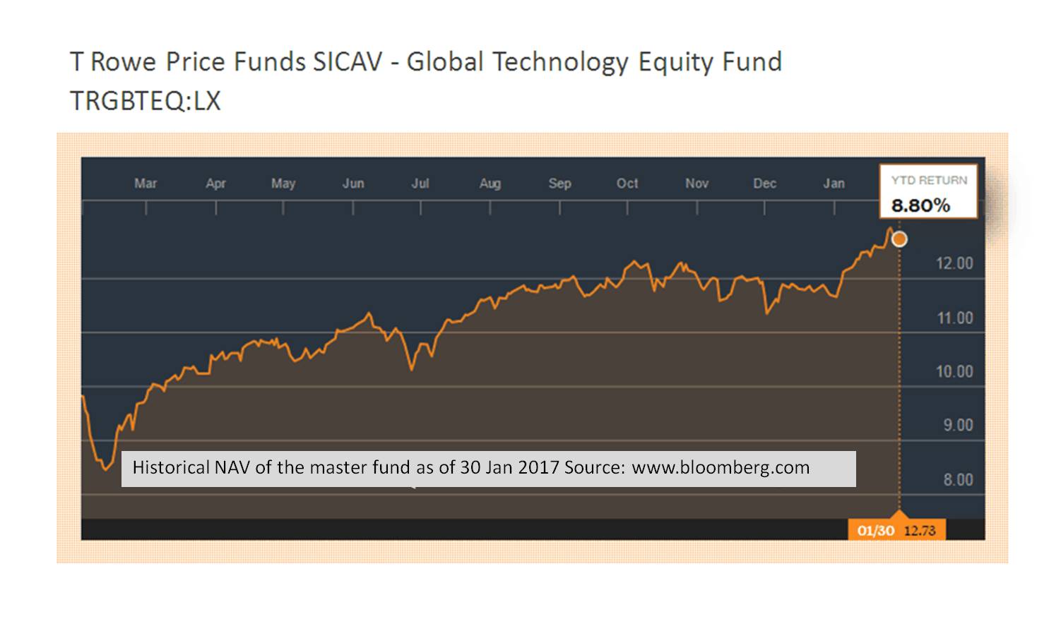 Since its establishment on 15 June 2015 to December 2016, T.Rowe Price Funds has yielded satisfactory returns amid short-term market fluctuations when the technology business confronted its hard time in the last quarter of 2016. Then, prices of technology stocks plummeted. However, the fund decided to purchase plummeted stock such as Alibaba during that period. As a result, the fund has seen a rapid turnaround of its return at 10%. Given its active style of management, it's believed to provide high returns in the long term.