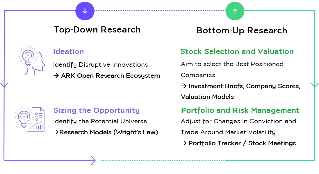 Having confidence in disruptive innovation makes ARK Investment  different from others. Usually, other strategy , in general, has teams of analysts by industry sectors. But ARK’s strategy has determined for innovations that will change the world. Therefore, at ARK, we saw a team of new generations from several fields spanning from researchers, experimenters, innovators, consultants to those in fields of innovations. Each of them has experience and expertise in a thematic innovations to invest, while they share ideas and conducting Top-Down analyses that are assumptions for innovations and studies for possibilities. Opportunities for marketing and structural shifts of industries are also learned then backed with Bottom-Up analyses that will find interesting enterprises that have useful innovations, visionary leaders, competitiveness, and reasonable price before the final investment decision.