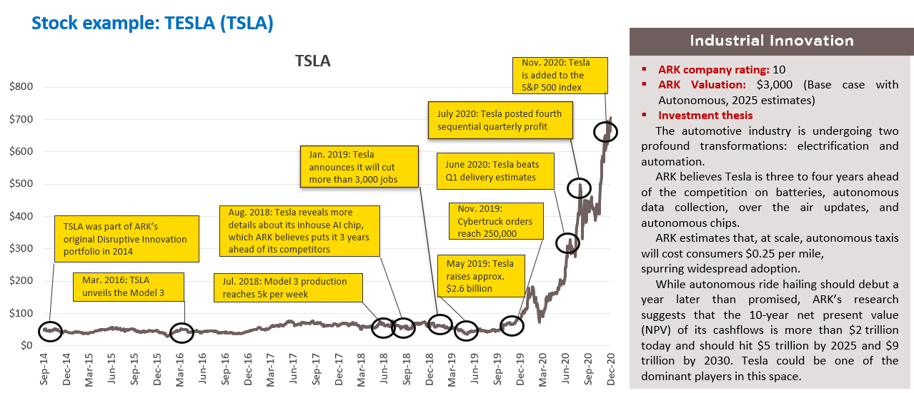 Source: ARK Invest, Nikko AM as of 31 Dec 2020 | The graph above is shown based on a representative account for illustrative purposes. Reference to individual stocks does not guarantee their continued inclusion in the strategy’s portfolio or client portfolios. This should not be considered a recommendation to buy or sell these stocks.