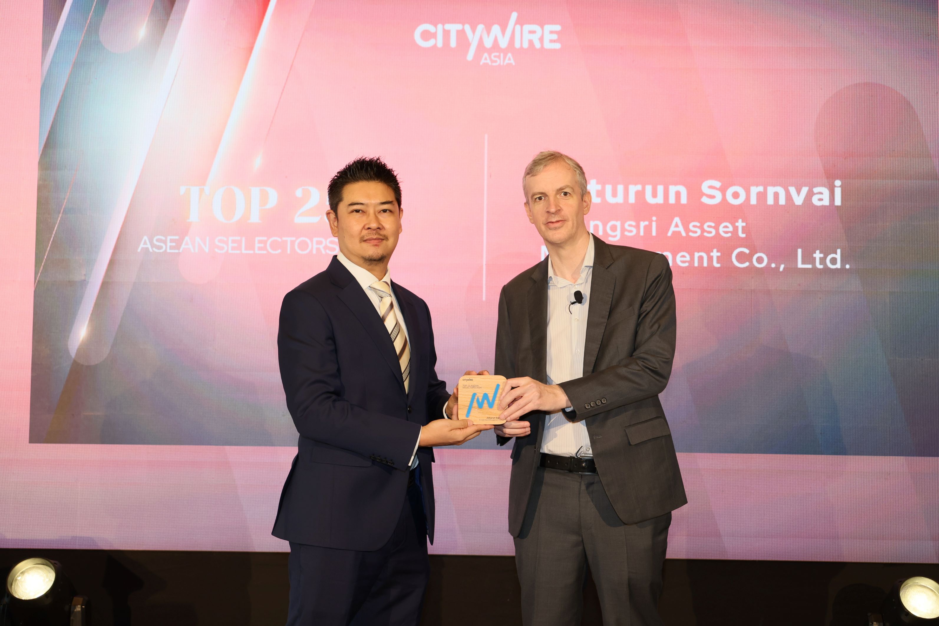 Mr. Jaturun Sornvai, Chief Global Investment Officer, Krungsri Asset Management Company Limited accepted the Top 25 ASEAN Selectors 2024 award from Mr. James Phillipps, Investment Editor, Asia, Citywire, who had selected the 25 most influential and respected product gatekeepers and investment professionals across the ASEAN region. The award judging criteria was based on clients and peers’ dialogues, including a successful and proven track record in products’ selection, investment advisory, and investment decisions at their institution over the last 12 months.