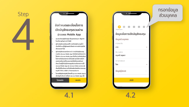 4. หลังจากยืนยันตัวตนสำเร็จ จะเข้าสู่การกรอกข้อมูลต่างๆ* ในการเปิดบัญชีกองทุน