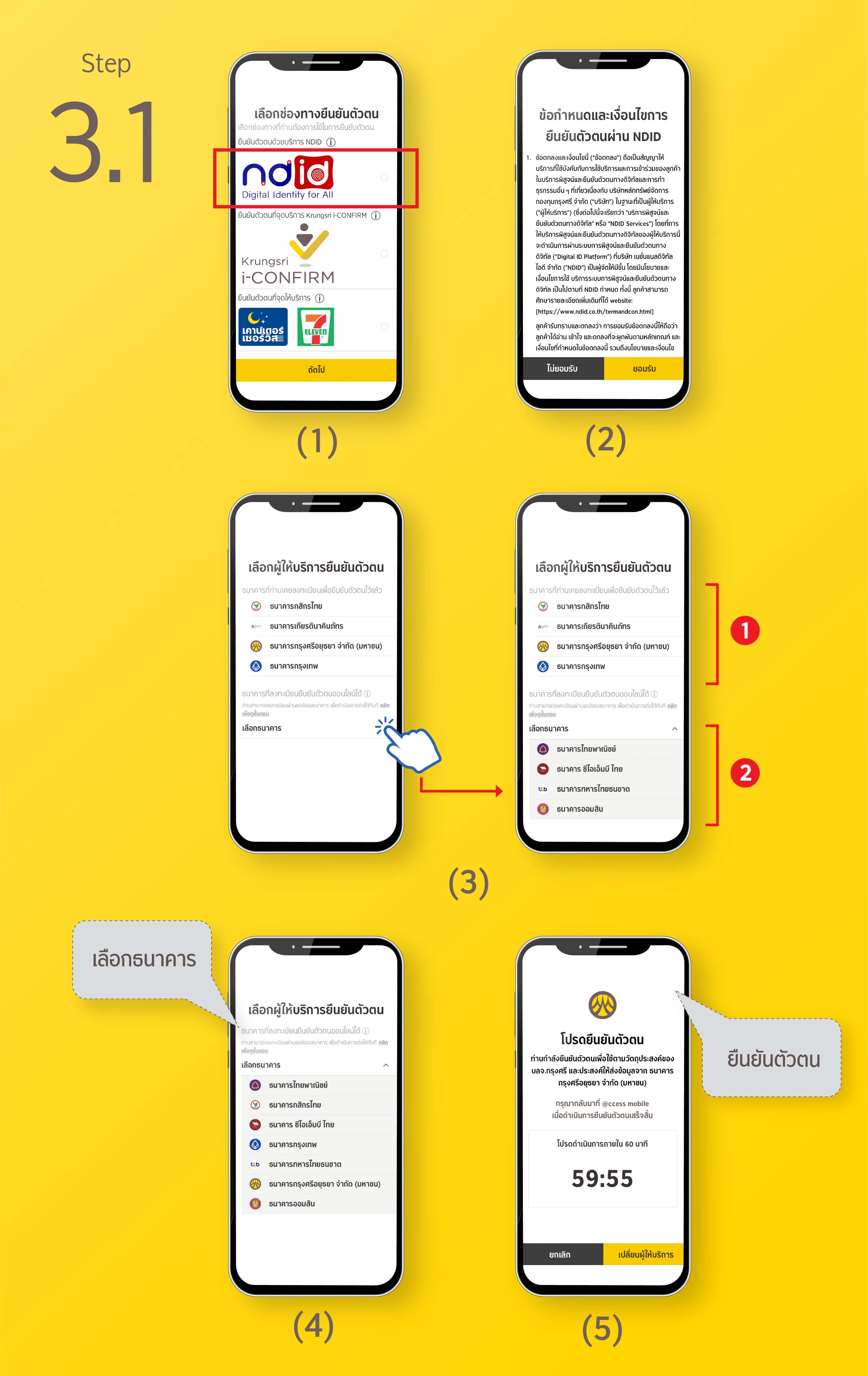 1. ขั้นตอนการยืนยันตัวตนผ่าน NDID ของแต่ละธนาคาร