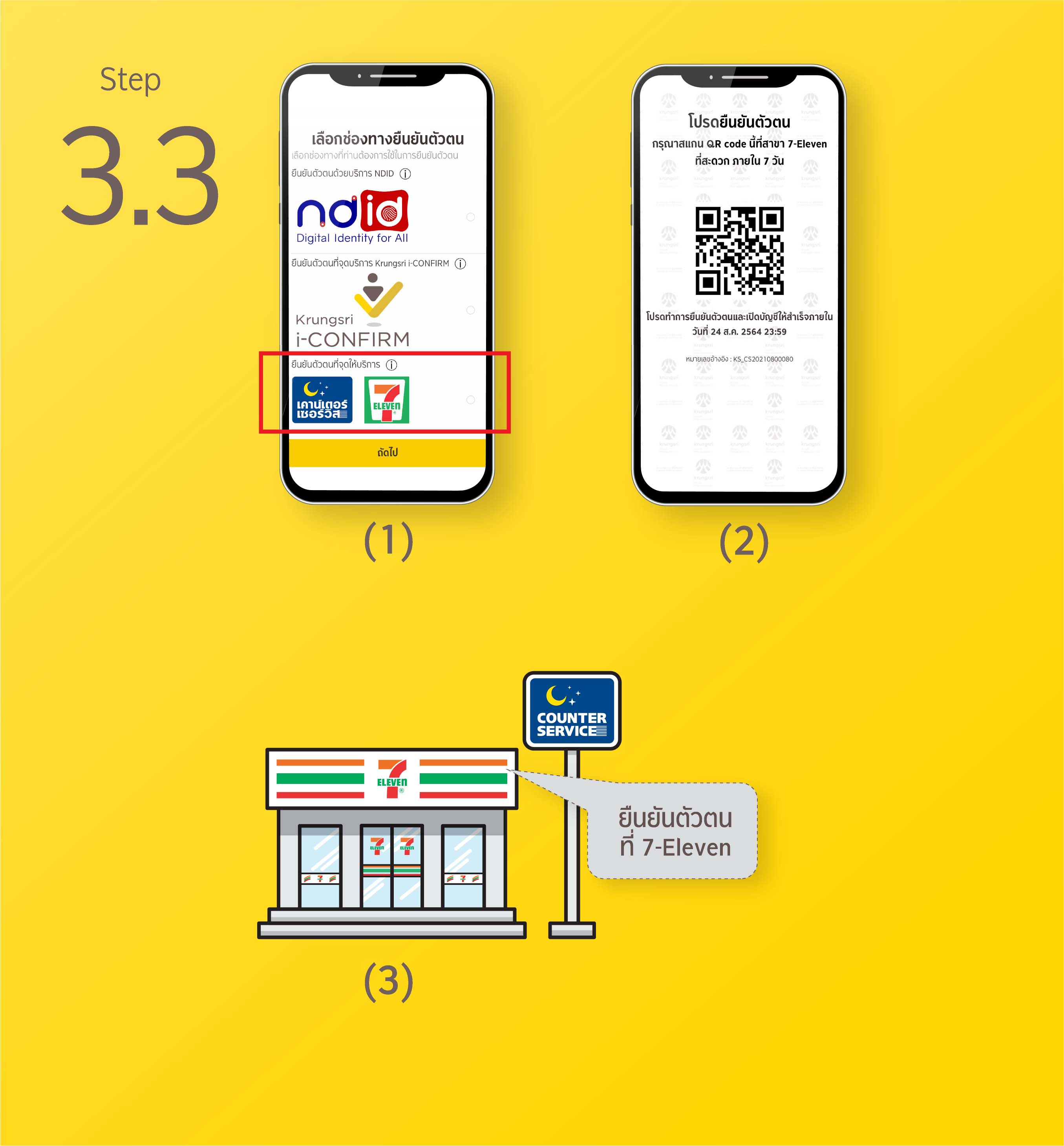 3.3 ช่องทางบริการยืนยันตัวตนที่จุดให้บริการเคาน์เตอร์เซอร์วิส ใน 7-Eleven ทุกสาขา*