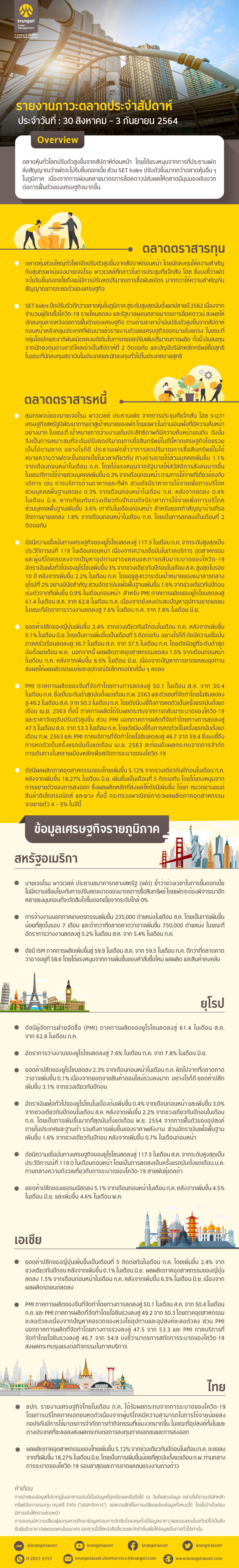 สรุปภาวะตลาดประจำสัปดาห์ (30 ส.ค. - 3 ก.ย. 2564)