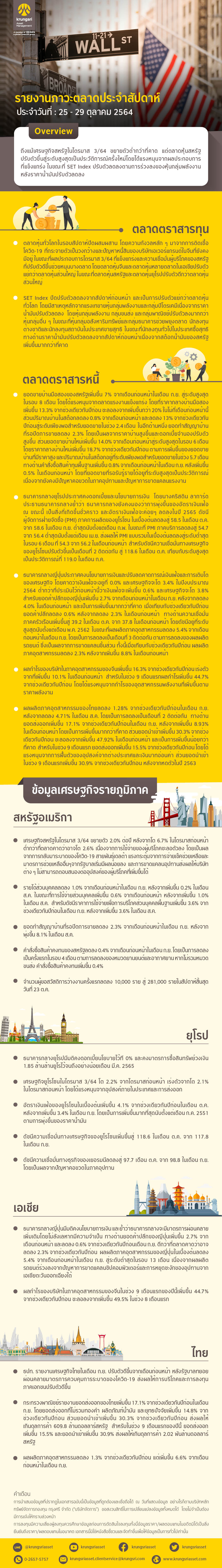สรุปภาวะตลาดประจำสัปดาห์ (25 - 29 ตุลาคม 2564)
