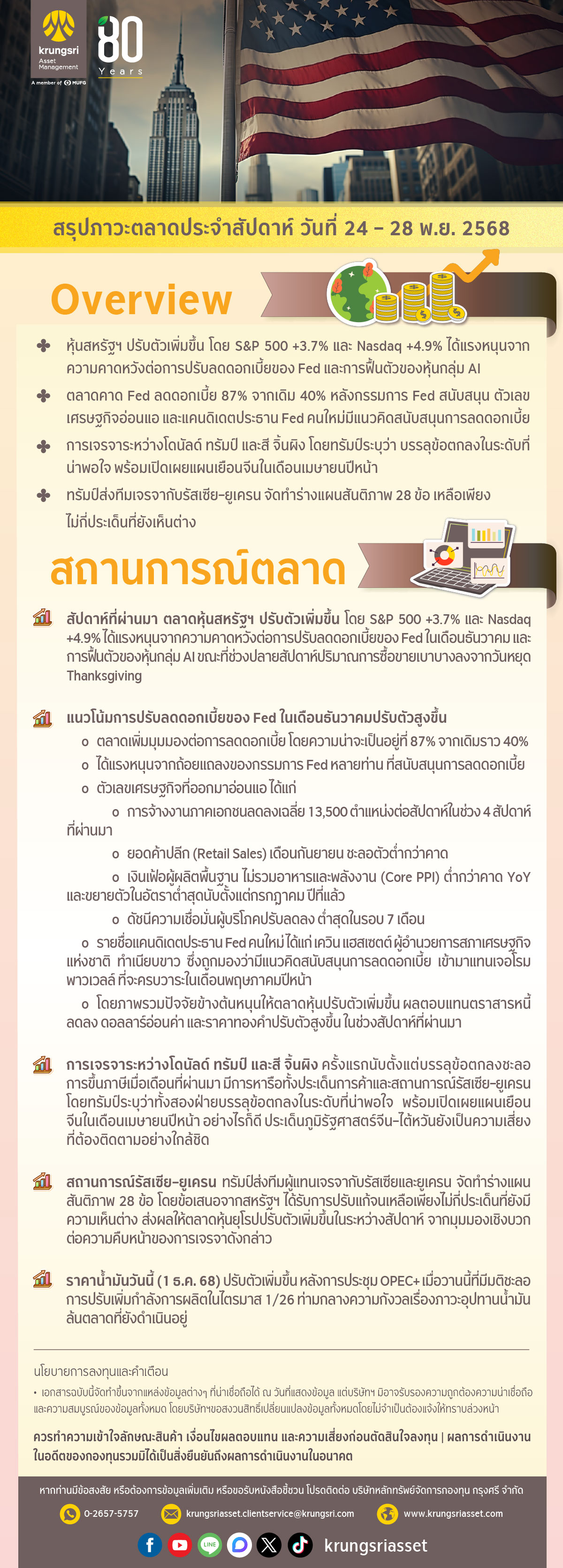 สรุปภาวะตลาดประจำสัปดาห์ (24 - 28 พฤศจิกายน 2568)