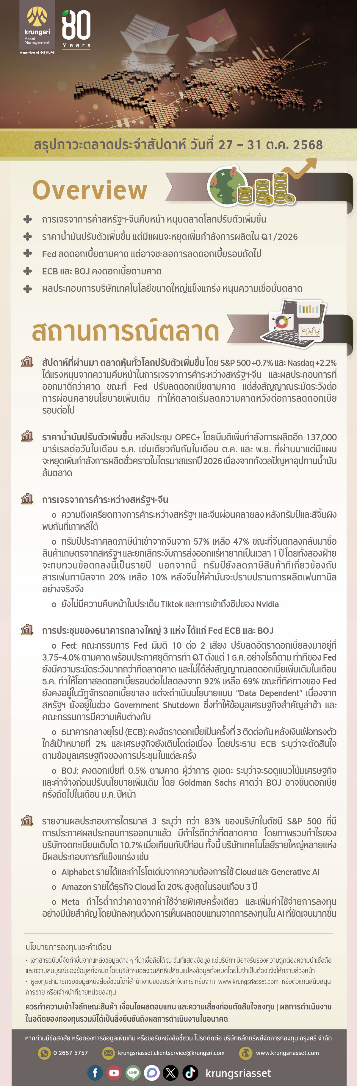 สรุปภาวะตลาดประจำสัปดาห์ (27 - 31 ตุลาคม 2568)
