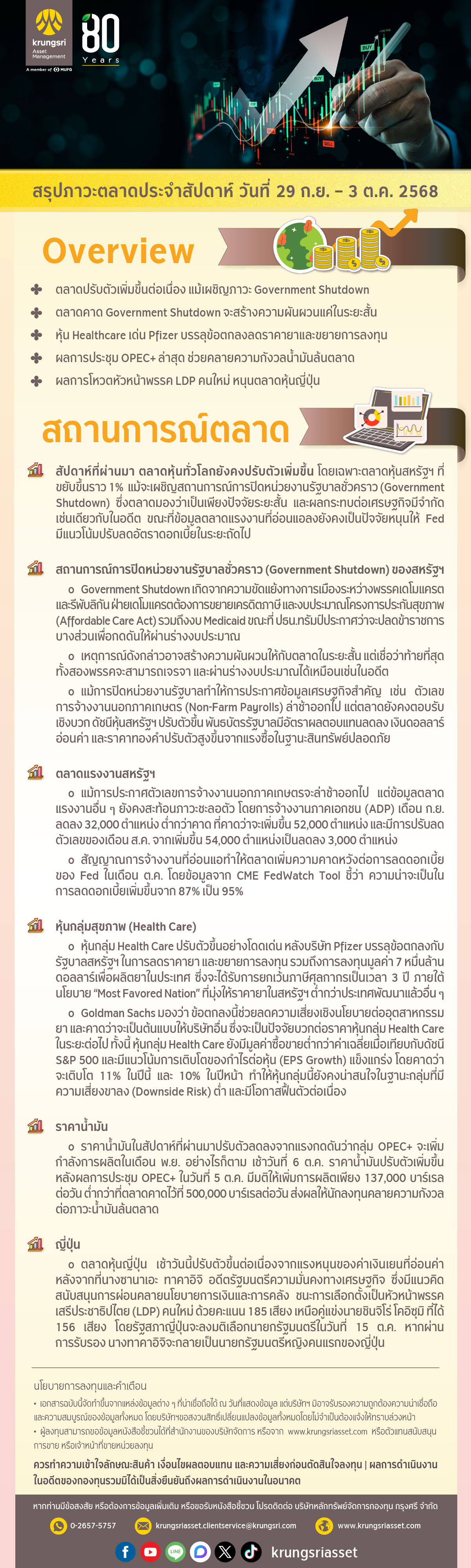 สรุปภาวะตลาดประจำสัปดาห์ (29 กันยายน - 3 ตุลาคม 2568)