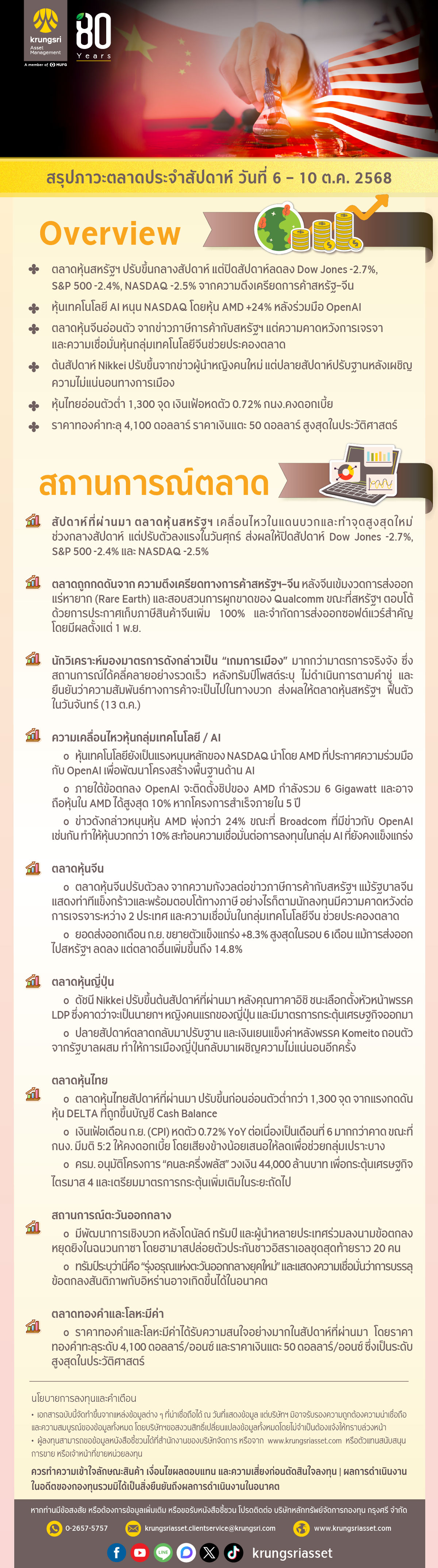 สรุปภาวะตลาดประจำสัปดาห์ (6 - 10 ตุลาคม 2568)