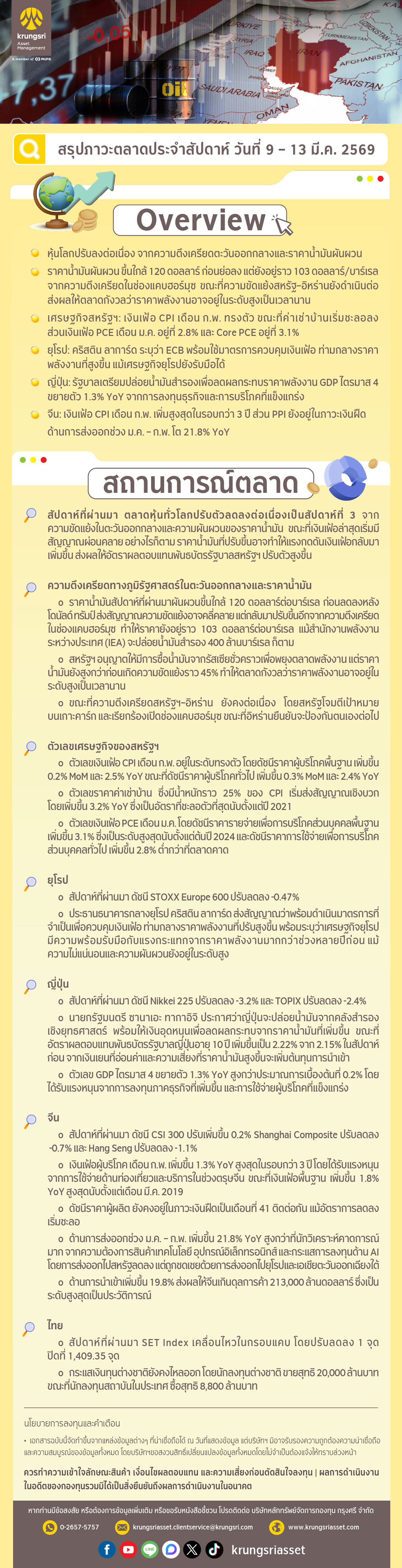 สรุปภาวะตลาดประจำสัปดาห์ (9 - 13 มีนาคม 2569)
