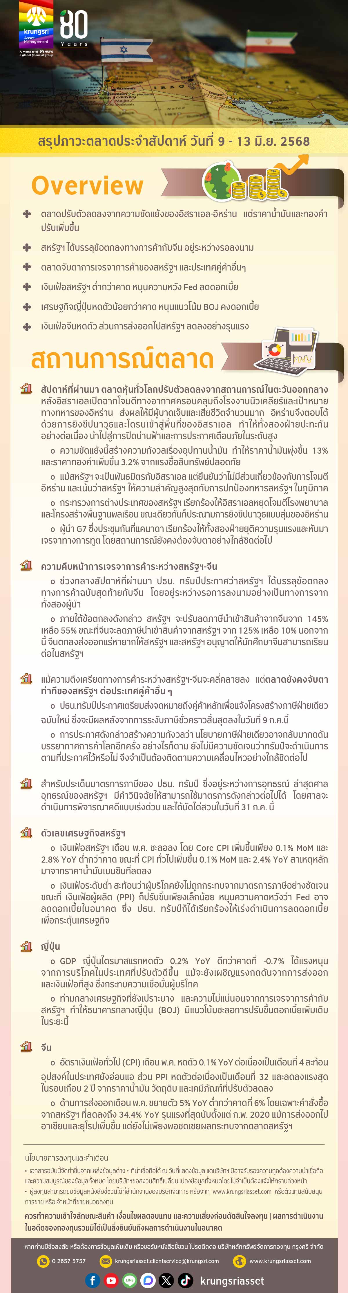 สรุปภาวะตลาดประจำสัปดาห์ (9 - 13 มิถุนายน 2568)