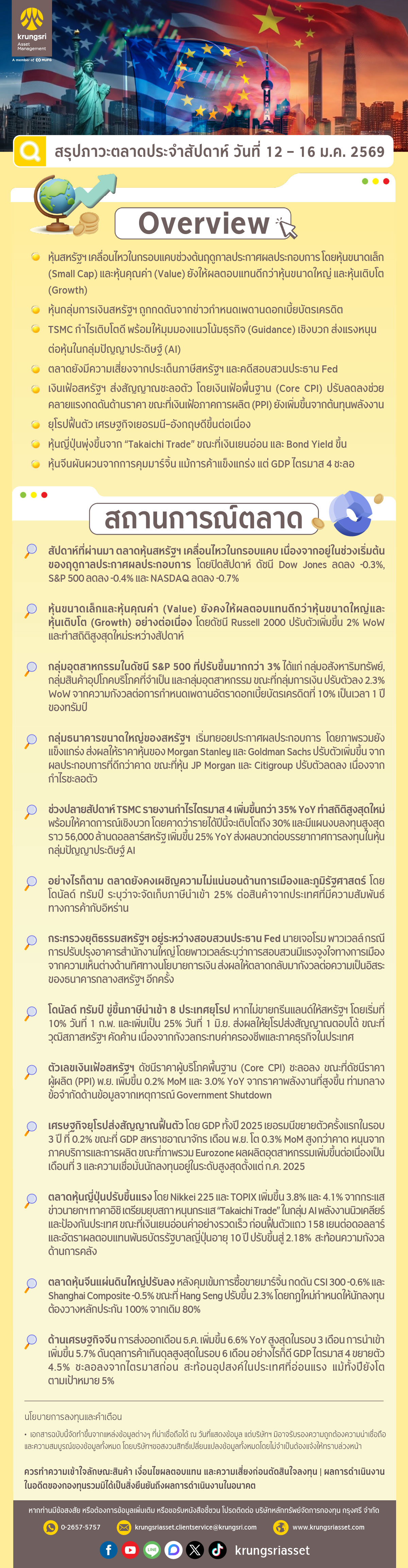 สรุปภาวะตลาดประจำสัปดาห์ (12 - 16 มกราคม 2569)