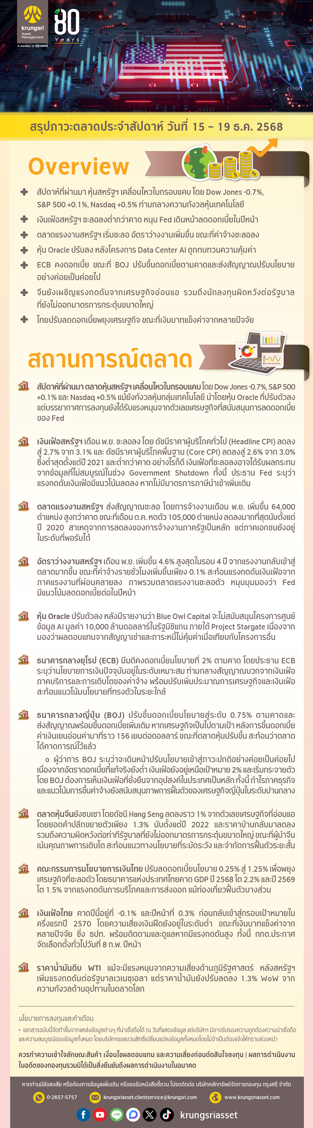 สรุปภาวะตลาดประจำสัปดาห์ (15 - 19 ธันวาคม 2568)