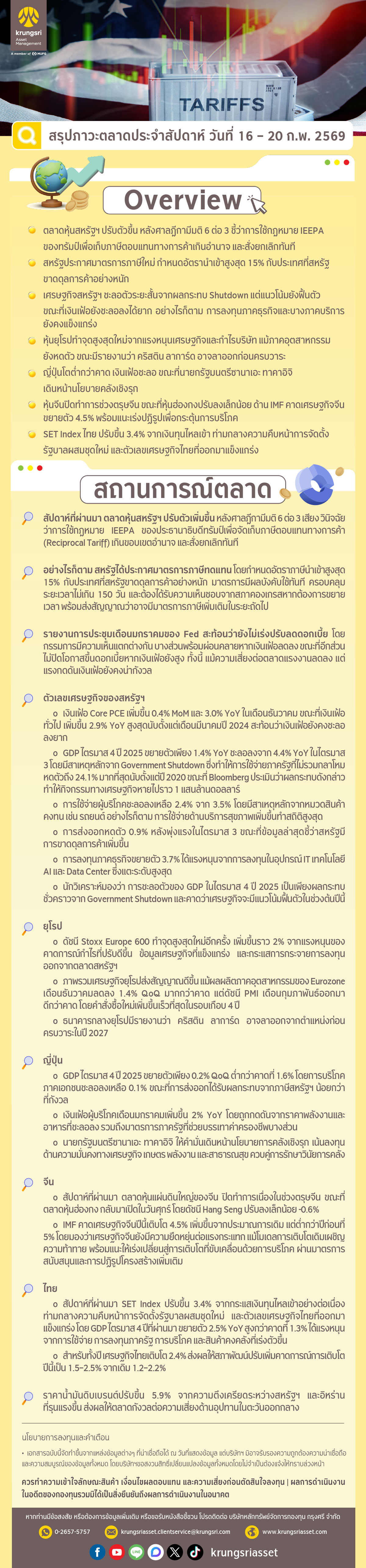 สรุปภาวะตลาดประจำสัปดาห์ (16 - 20 กุมภาพันธ์ 2569)
