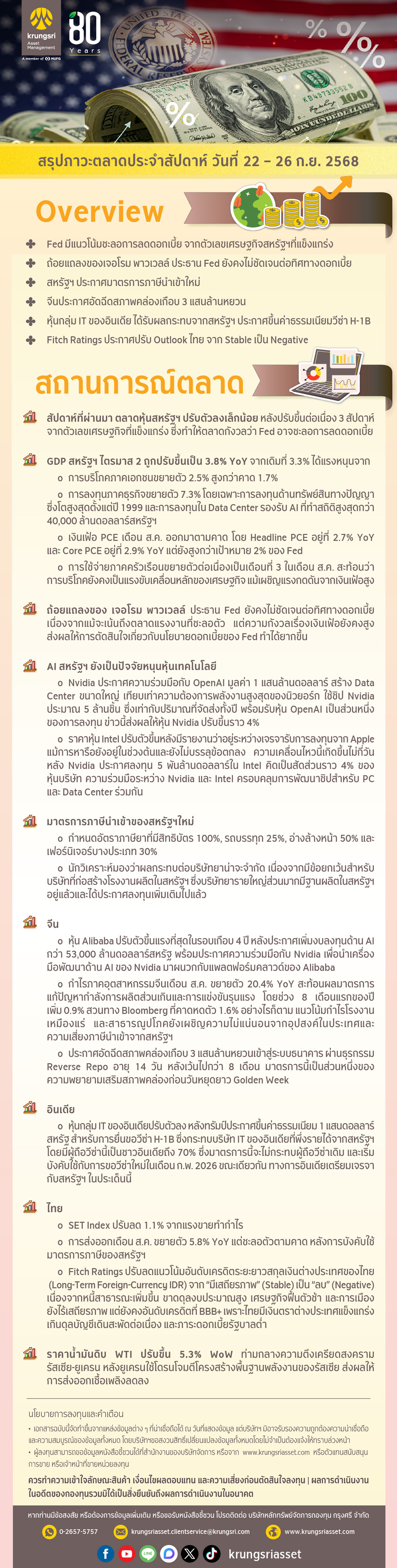 สรุปภาวะตลาดประจำสัปดาห์ (22 - 26 กันยายน 2568)