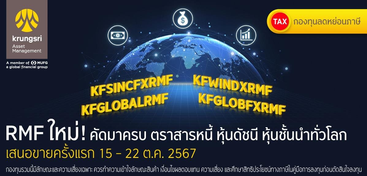 คุณสุภาพร ลีนะบรรจง กรรมการผู้จัดการ บริษัทหลักทรัพย์จัดการกองทุน กรุงศรี จำกัด (บลจ.กรุงศรี) เปิดเผยว่า “บริษัทเปิดเสนอขายกองทุน RMF ใหม่ 4 กองทุน ซึ่งคัดสรรมาจากธีมการลงทุนที่มีโอกาสเติบโตสูง รับดอกเบี้ยขาลง และจัดการความผันผวนได้ดี ได้แก่ กองทุน KFSINCFXRMF KFWINDXRMF KFGLOBALRMF และKFGLOBFXRMF เพื่อเพิ่มทางเลือกสำหรับทั้งผู้ที่ต้องการลดความเสี่ยงให้กับพอร์ต และผู้ที่เน้นโอกาสรับผลตอบแทนสูงจากหุ้นชั้นนำทั่วโลก ไปพร้อมสิทธิประโยชน์ทางภาษี