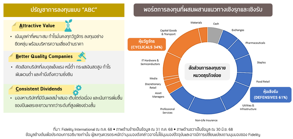 - พอร์ตการลงทุนที่ผสานการลงทุนเชิงรุกและรับ คัดสรรหุ้นบริษัทที่สามารถจ่ายเงินปันผลได้อย่างต่อเนื่องและในระดับเพิ่มขึ้น และกำไรสุทธิมีความผันผวนต่ำ ช่วยปกป้องเงินลงทุนในภาวะตลาดขาลงพร้อมกับโอกาสสร้างผลตอบแทนรวมที่ดี