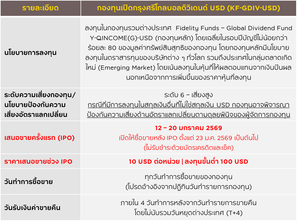 กองทุนเสนอขายครั้งแรก 12 – 20 ม.ค. 69 | ลงทุนขั้นต่ำ 100 USD