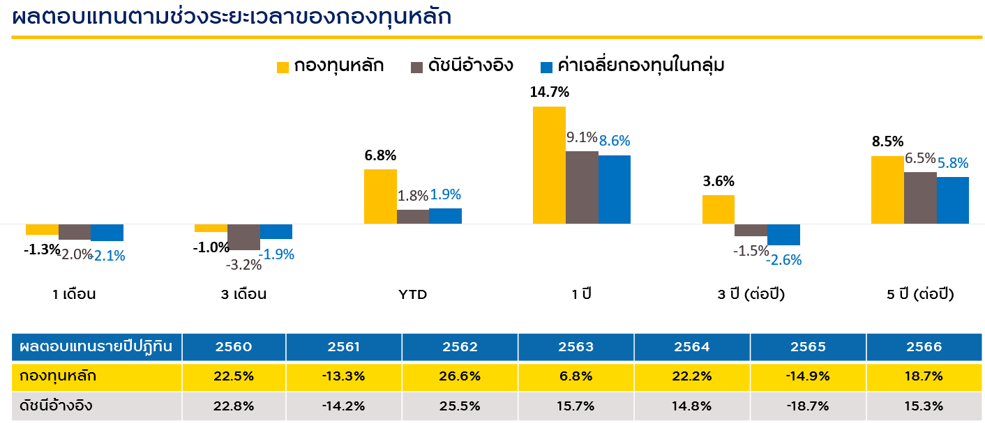 กองทุนหลักมีประวัติการสร้างผลตอบแทนที่โดดเด่นในระยะยาว เหนือกว่าดัชนีชี้วัดและค่าเฉลี่ยของกลุ่ม