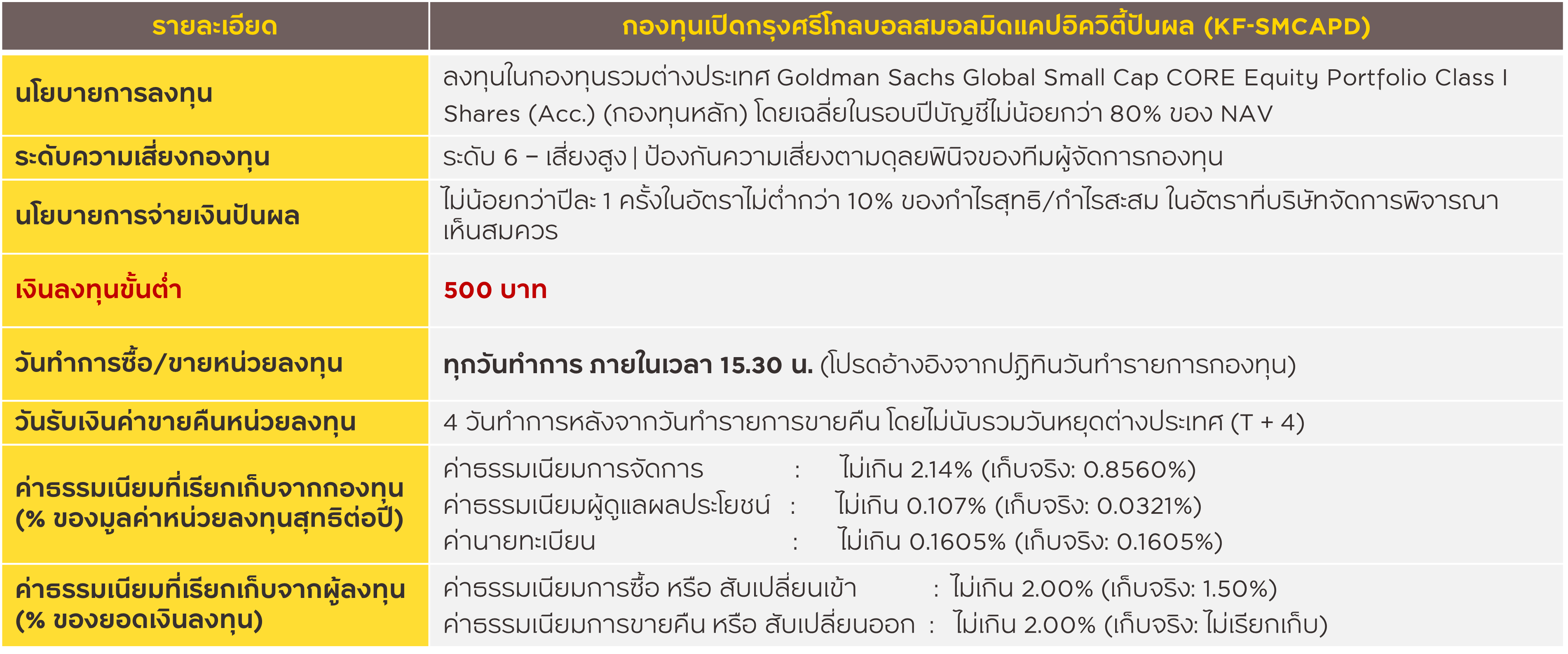 สรุปข้อมูลกองทุนกรุงศรี: KF-SMCAPD