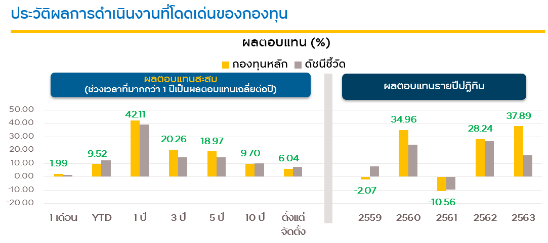 - มีเป้าหมายในการสร้างผลตอบแทนทางการเงินที่เหนือกว่าดัชนี ผ่านการลงทุนที่ก่อให้เกิดผลลัพธ์เชิงบวกต่อสภาพแวดล้อมและสังคม พิสูจน์ได้จากผลการดำเนินงานที่โดดเด่นเมื่อเทียบกับดัชนี