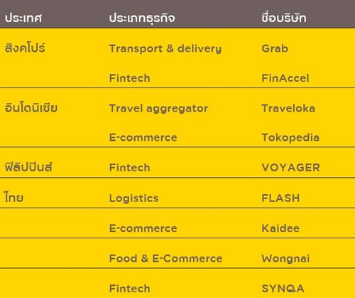 - ทั้งในไทยและอาเซียนเริ่มมีสินค้าและบริการจากธุรกิจ Start-up ที่ติดตลาด ผู้บริโภคมีความคุ้นเคยกับแบรนด์เหล่านั้นที่มีศักยภาพเติบโตสู่การเป็น Unicorn ได้ในอนาคต